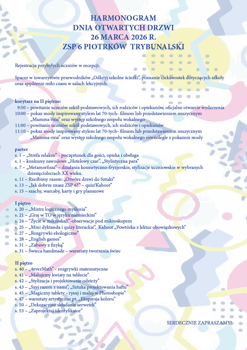 Podczas spaceru po szkole z udziałem królowej Jadwigi młodzież pozna wyposażenie naszych pracowni. Ponadto, w każdej sali przygotowane zostaną interesujące atrakcje dla wszystkich uczestników.