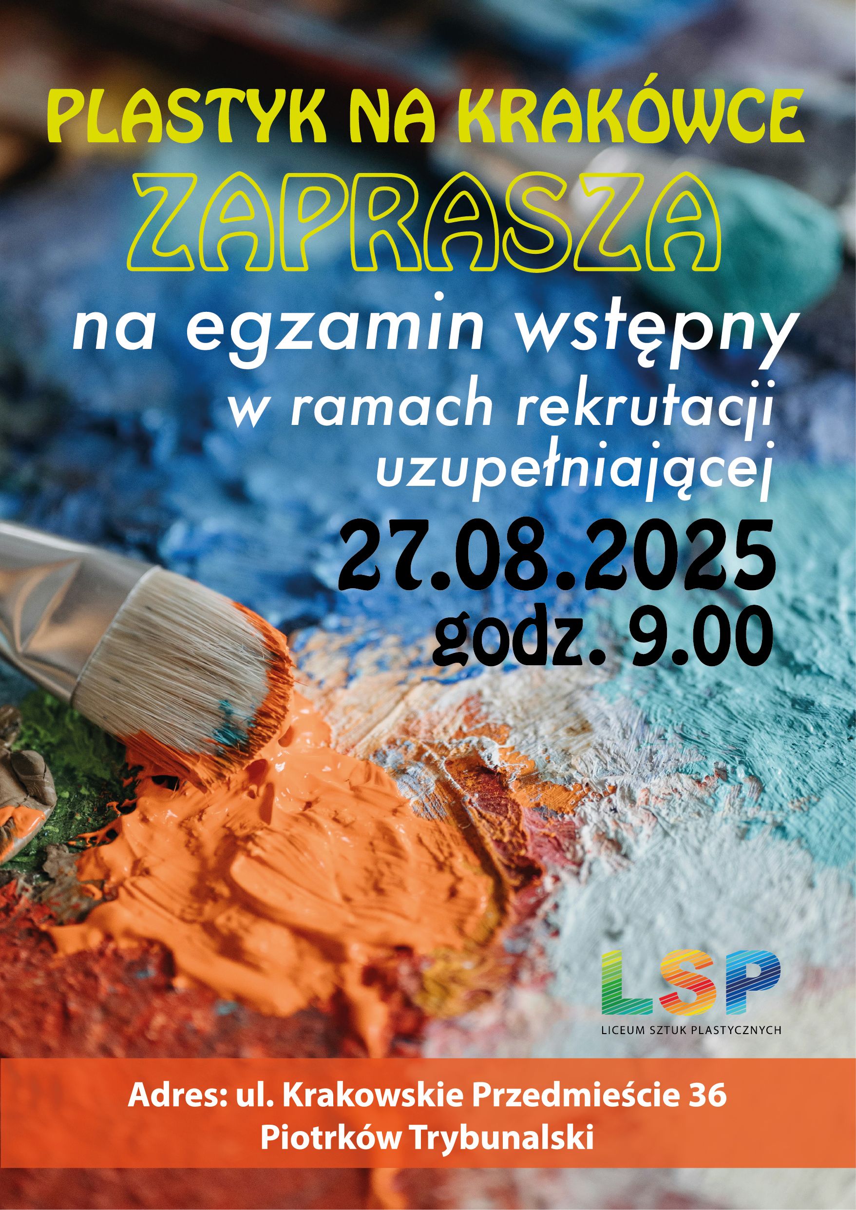 27 sierpnia 2025r. o godz. 9.00 odbędzie się egzmin uzupełniający dla absolwentów szkół podstawowych, którzy od 1 września chcą uczęszcać do naszego Liceum Sztuk Plastycznych.